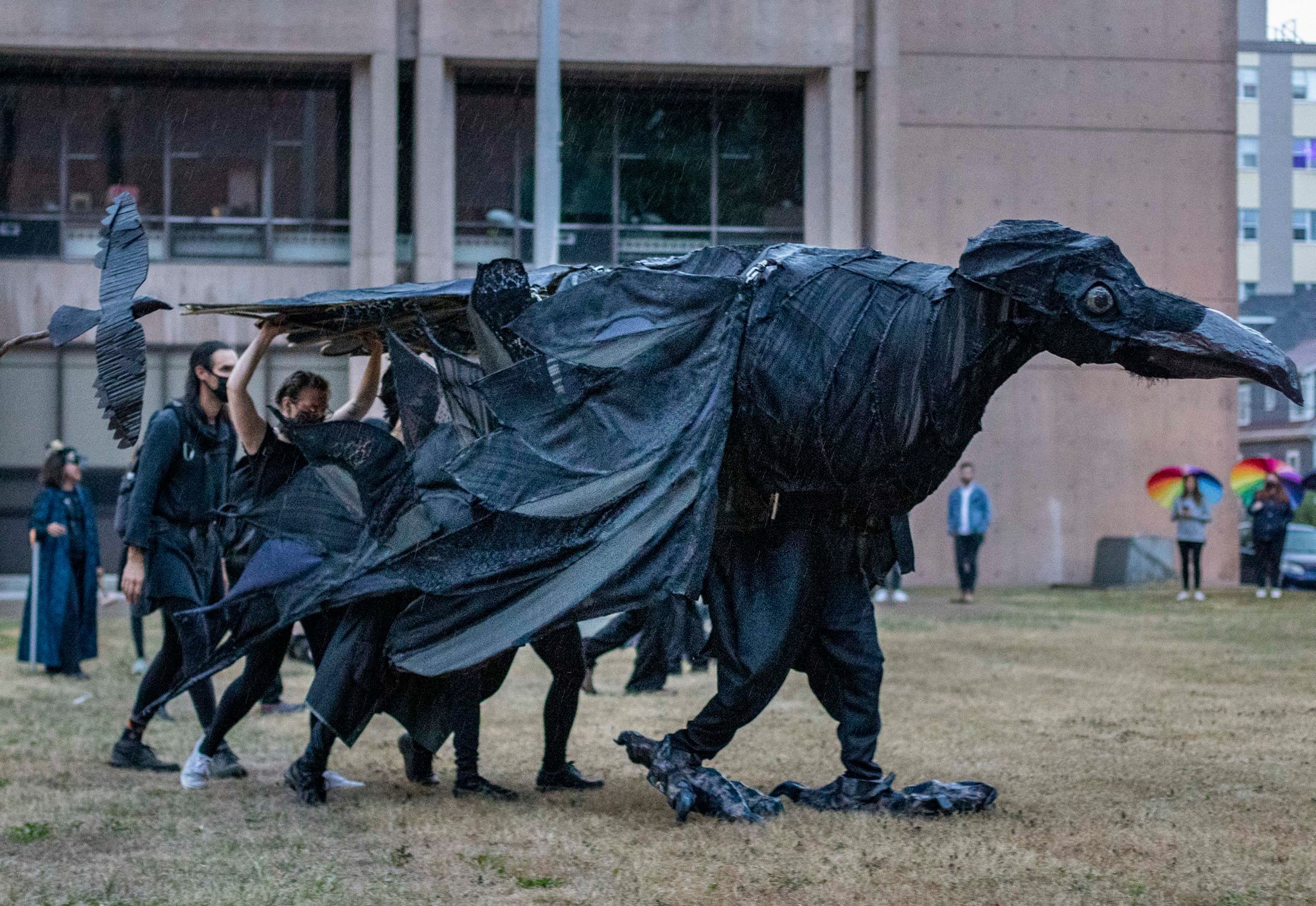 Branching from the legacy of Bread and Puppet Theater, our work has been primarily based in streets, fields and public forums as a way of making theatre more accessible. We are enthusiastic about empowering communities to imagine possibilities together and to use spectacle and connection as transformative powers.